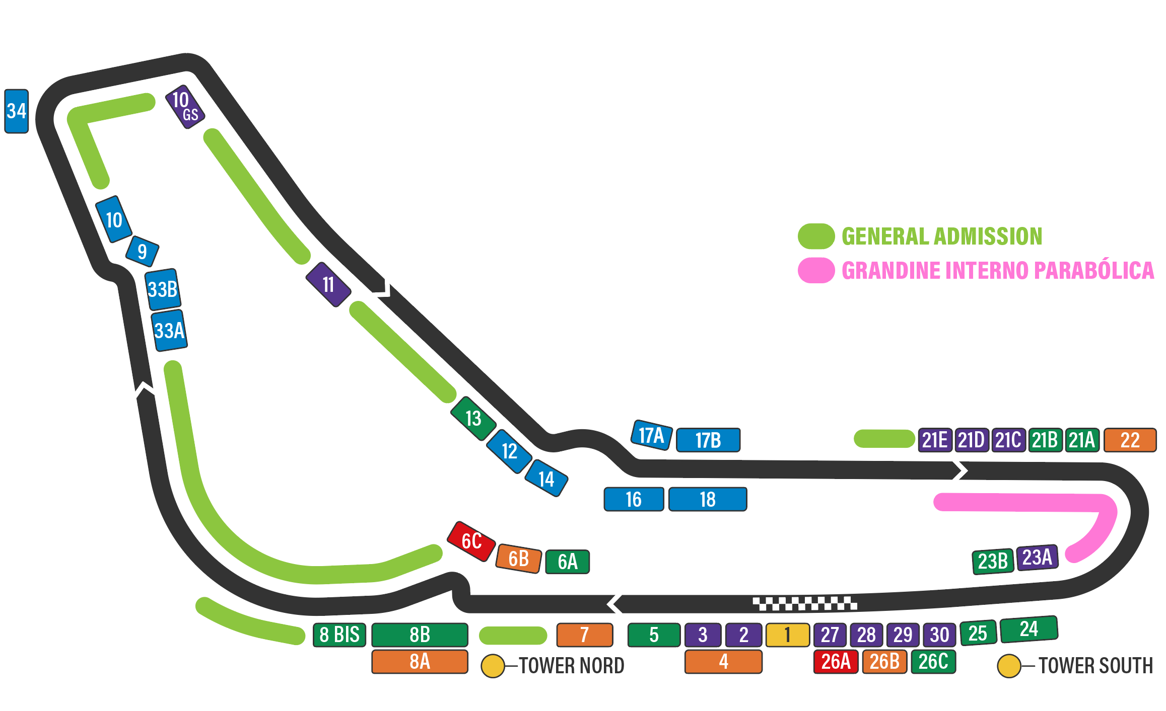 Bitte beachten Sie, dass die Sitzplätze auf der Tribüne Interno Parabolica (GF) nicht reserviert sind. Wir empfehlen Ihnen daher, frühzeitig anzureisen, um sich die besten Plätze zu sichern.